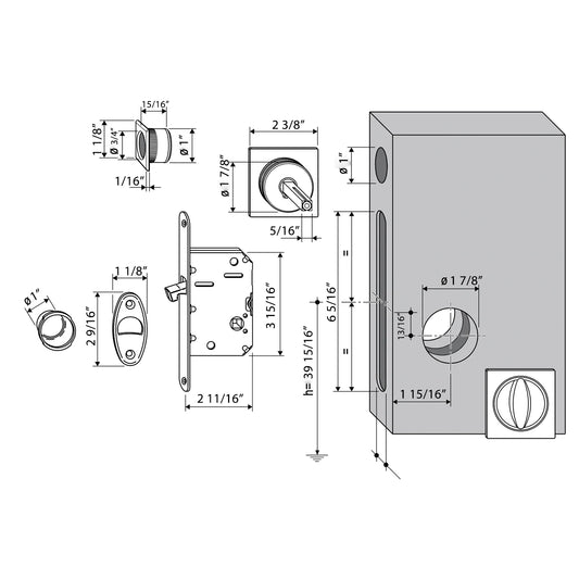 AGB Scivola Tre Square Lock For Pocket Doors. Made in Italy.